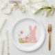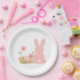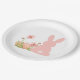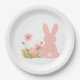 Cute Pink Easter Bunny with Spring Flowers Paper Plate