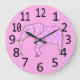 Cute painting of a pink elephant with white polka dots is printed on custom decorative wall clocks. The background colour of pink can be customised. The numbers are large and black. Thank you for shopping CherylsArt on Zazzle: http://www.zazzle.com/CherylsArt*/