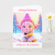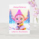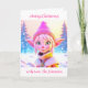 Cute ai elf in pink hat cute whimsical snowy background winter personalised Christmas card.