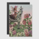A magical hand-painted illustration of an African fairy riding a zebra unicorn on a floral safari through a garden of beautiful proteas and dietes gradiflora flowers.