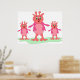 Cute Pink Fantasy Creatures Whimsical Aliens Poster