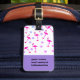 This cute pink flamingo design custom luggage tag is available to personalise with your name and contact information.