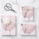 Wrapping paper sheets with a whimsical hand drawn pink flamingo.