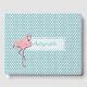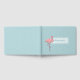 Fun autograph or guest book done in an aqua and white polka dot pattern, with graphics of a pink flamingo, on the front. Personalise the Aqua coloured text to read what you want.