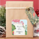 Wedding save the date stickers with a cute and whimsical pink flamingo. Surrounded by green tropical leaves, and red and yellow hibiscus flowers. A rectangle shaped, gold gradient frame in the centre.