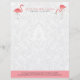 Cute pink Flamingo White Damasks Background Letterhead Design