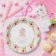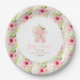 Cute pink flower-decorated alphabet blocks for paper plates design for your guests at your baby shower celebration.