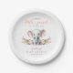 Cute pink floral elephant baby girl shower paper plate.