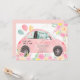 Cute pink floral gold car drive by baby shower invitation