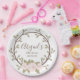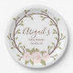 Cute Pink Floral Wreath Baby Shower Paper Plate