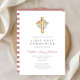 Cute Pink Floral Wreath Cross First Communion Invitation