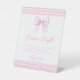 Cute pink gingham bow baby girl diaper raffle pedestal sign