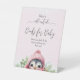 Cute Pink Girl Penguin Winter Baby Shower Pedestal Sign