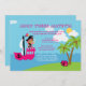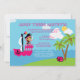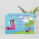 This 5x7 girls birthday party invite has a pink pirate theme! There is a brown hair pirate sailing on her pirate ship on the left side. There is a pink parrot flying around her head. On the right, there is an island with some palm trees and a pink treasure chest. You can easily customise your party information in the middle. Graphics by Zenware Designs at Mygrafico