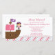 This sweet girls birthday party photocard invite has a pink and purple pirate theme! There is a brown hair pirate sailing on her pirate ship standing next to a parrot on the left side. On the bottom border, there is a trendy pink, white, taupe, and aqua stripes pattern. On the right, you can easily customise your party information. Some design elements by STOCKBERRY STUDIO