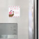 This sweet square girls birthday party refrigerator magnet has a pink and purple pirate theme! There is a brown hair pirate sailing on her pirate ship standing next to a parrot on the left side. At the top and bottom borders, there is a trendy pink, white, taupe, and aqua stripes pattern. Ahoy Matey is written at the top. On the right, you can easily customise the name of the birthday girl. Some design elements by STOCKBERRY STUDIO