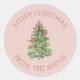 Add a festive finishing touch to your holiday gifts and cards with these whimsical watercolor Christmas tree stickers. Featuring a hand-painted tree decorated with pink bows on a soft blush background, these charming round labels bring a warm and cheerful aesthetic to the season.