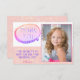 Cute Pink Frame Birthday Thank you Photo Card for girls with photo and thank you text. Personalizable birthday thank you card for your friends and family. Upload your photo and personalise the card with your name and text. The card has a colourful pink and purple cartoon frame cloud. Great as thank you card for girls.