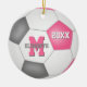 This girls' soccer themed ornament features a soccer ball graphic upon which you can customise the athlete's name, monogram and commemorative year - the typically black panels of the soccer ball graphic have been recolored pink and grey - by katz_d_zynes
