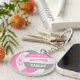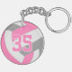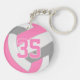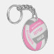 This cute volleyball themed keychain features a realistic looking pink, grey and white volleyball upon which you can customise the player's name, jersey number and court position, plus school or club name and mascot name in a varsity letter style font - by katz_d_zynes