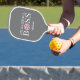 A grey pickleball paddle with a pink pickleball and the words, "pickleball boss". Personalize it with your name.