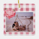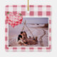 Cute Pink Heart Gingham Custom Photo Christmas Ceramic Ornament
