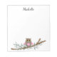 Cute pink heart owl on branch personalized name notepad.