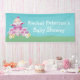 Use this banner to greet your guests or advertise your party! What a fun way to honour a mummy-to-be than to give her a baby shower with the theme of Humpty Dumpty. A classic, adorable and familiar nursery rhyme that we all love and adore. This design features a Humpty Dumpty character sitting on a short wall with flowers and grass. He has rosy cheeks and is wearing a suit with a big bow tie. The background has floating clouds. The colours are yellow, pink and green. Customise to make your own.