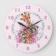 Cute Pink Jungle Safari Giraffe Kids Room Large Clock