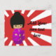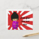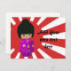 Cute Pink Kawaii Kokeshi Doll on rising sun Postcard