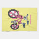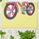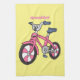 Cute pink kids bicycle cartoon illustration tea towel