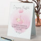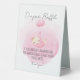 Add a sweet and practical touch to your baby shower with this adorable diaper raffle table tent sign. Featuring a soft pastel pink background, watercolor details, and a charming sleeping kitten carried by balloons, this table sign effortlessly blends cuteness with functionality. The elegant script font invites guests to participate in the diaper raffle while providing clear instructions to leave their tickets.