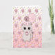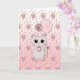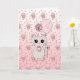 Cute hand drawn cartoon kitty cat with birthday hat on, pink girl's personalized birthday card.