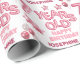 Adorable kids birthday wrapping paper features pink number 7 balloon, alphabet letter balloon, star balloon and party balloon. With greeting text "Happy birthday" and the kid's name. Both can be customised.