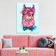This design features a cute watercolor portrait of a llama in watercolor splashes of pink and blue.