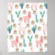 Cute Pink Llama's and Green Cactus Poster