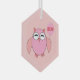 This ornament features a cute cartoon of a pink owl with sleepy eyes, a small beak and cute little feet. The owl is holding a bubblegum pink balloon. There is bright red text inside the balloon that says, “Love you”. This is the perfect gift for showing someone special how much you love them.