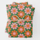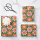 Cute Pink Orange Green Retro Flowers Wrapping Paper Sheets