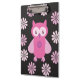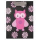 Cute, pink owl illustration with light pink flowers. Perfect gift idea for owl lovers.