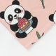 This cute panda bear blanket design includes cartoon panda bears holding strawberry cakes. The panda bear are surrounded by bamboo pieces. There is a light pink background colour.