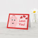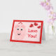 Tell that someone special that you love them with this cute, pink pig, and hearts, "I Love You" print card. Great for Valentine's Day and everyday!