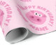 Cute pink pig cartoon Birthday wrapping paper. Cute design for kids, bacon lover, meat lover, pork eater etc. Funny fat piggy with big snout.