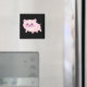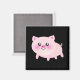 Cute Pink Pig on Black Magnet