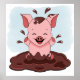 Cute Pink Pig Playing In Mud Poster