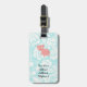 Cute Pink Pig; Teal Damask Luggage Tag