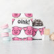 A cute and whimsical pink wrapping paper featuring a pattern of adorable little pigs all oinking!