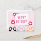 Cute Pink Polka Dot Cat Paws Up Happy Birthday Postcard