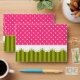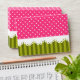 Cute and girly pink polka dot pattern and green stripes with graphic lace design in the middle.