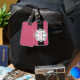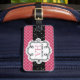 Add your first and last name, and contact details to create your personalised bag tag! Mod stylish imitation glitter effect in dark black on a modern quatrefoil patterned background in hot pink and white is girly without being prissy. A fancy and feminine sophisticated label graphic with two customizeable text fields is just waiting to be personalised just for you! . Add some pizazz and show off your lively personality with this cool personalised luggage tag for ladies. Several other fun colours and designs to choose from to match your travel luggage or backpack. Perfect also for instrument cases, photography equipment bags, sports gear duffels etc.
