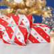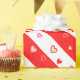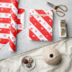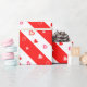 Cute heart confetti on diagonal red and white striped gift wrapping paper.